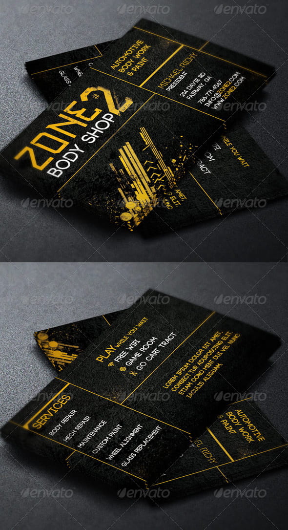 The Auto Body Shop Business Card Template is for a modern auto body shop professional. The template can also be used for other industries with a few simple edits. Make it part of your arsenal in your template database. Sold exclusively on graphicriver.net